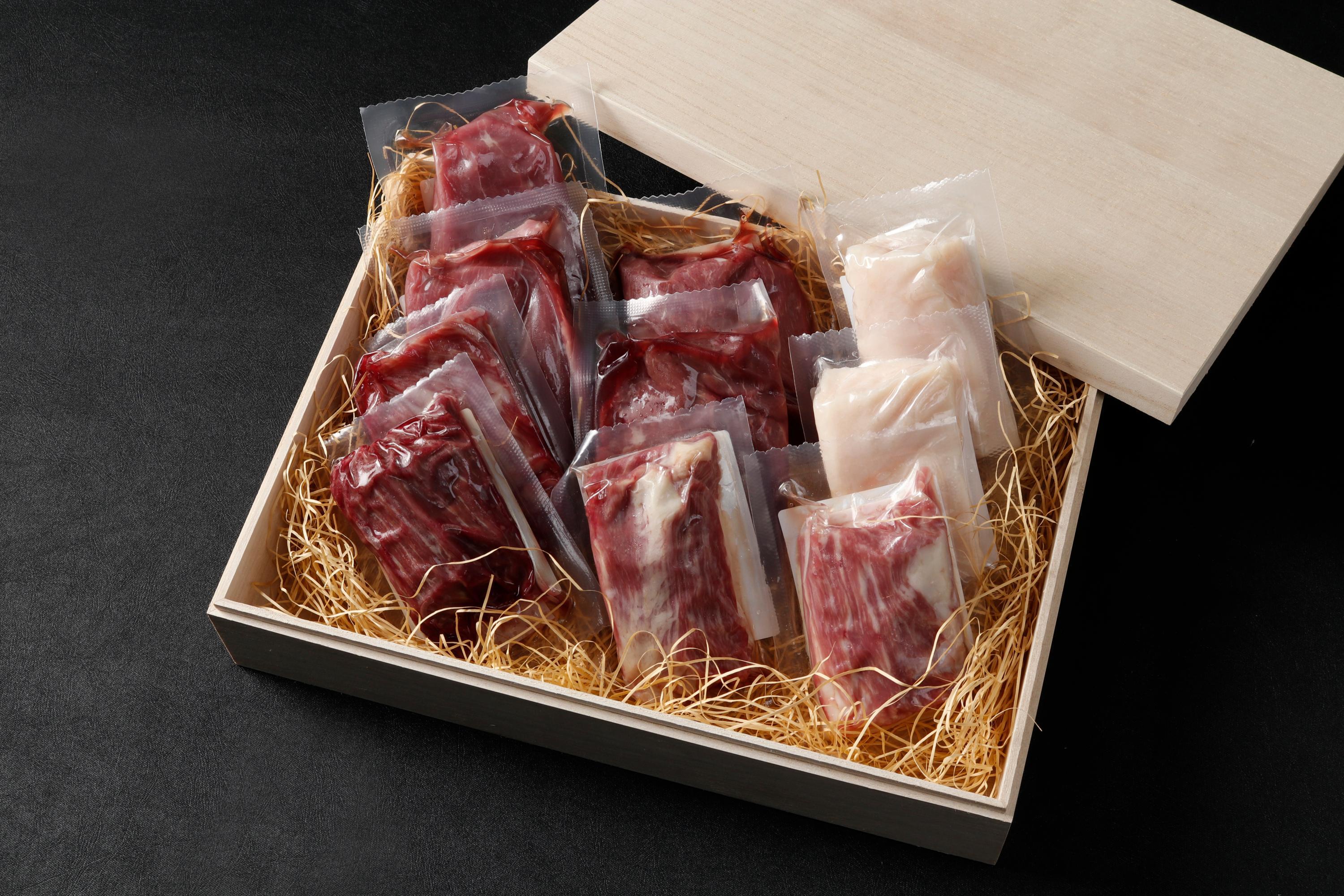 「たてがみ(こうね)」「赤身」「ハラミ」「ヒレ」「ふたえご」「タン」の人気部位を贅沢に盛り合わせ!それぞれ100gずつ、計600g入りで食べやすくポーション済み。特別な日のおつまみにも、ご家族との団らんにもぴったりです。